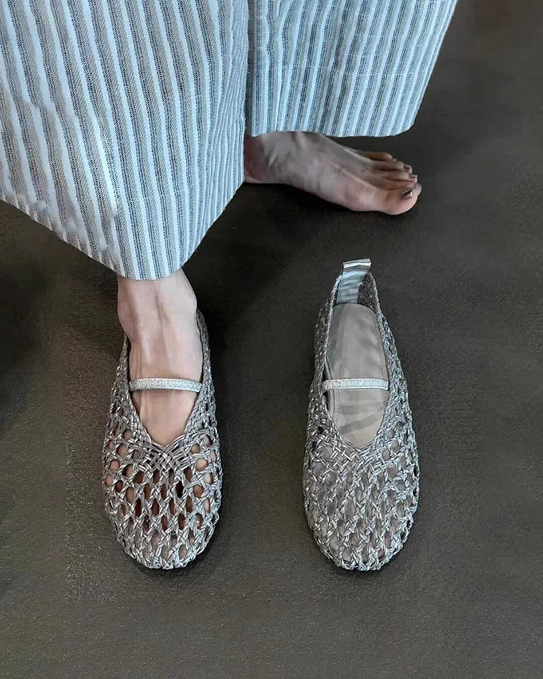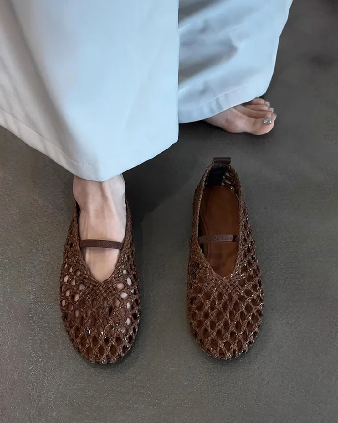 Francesca Hollow Woven Flat Shoes