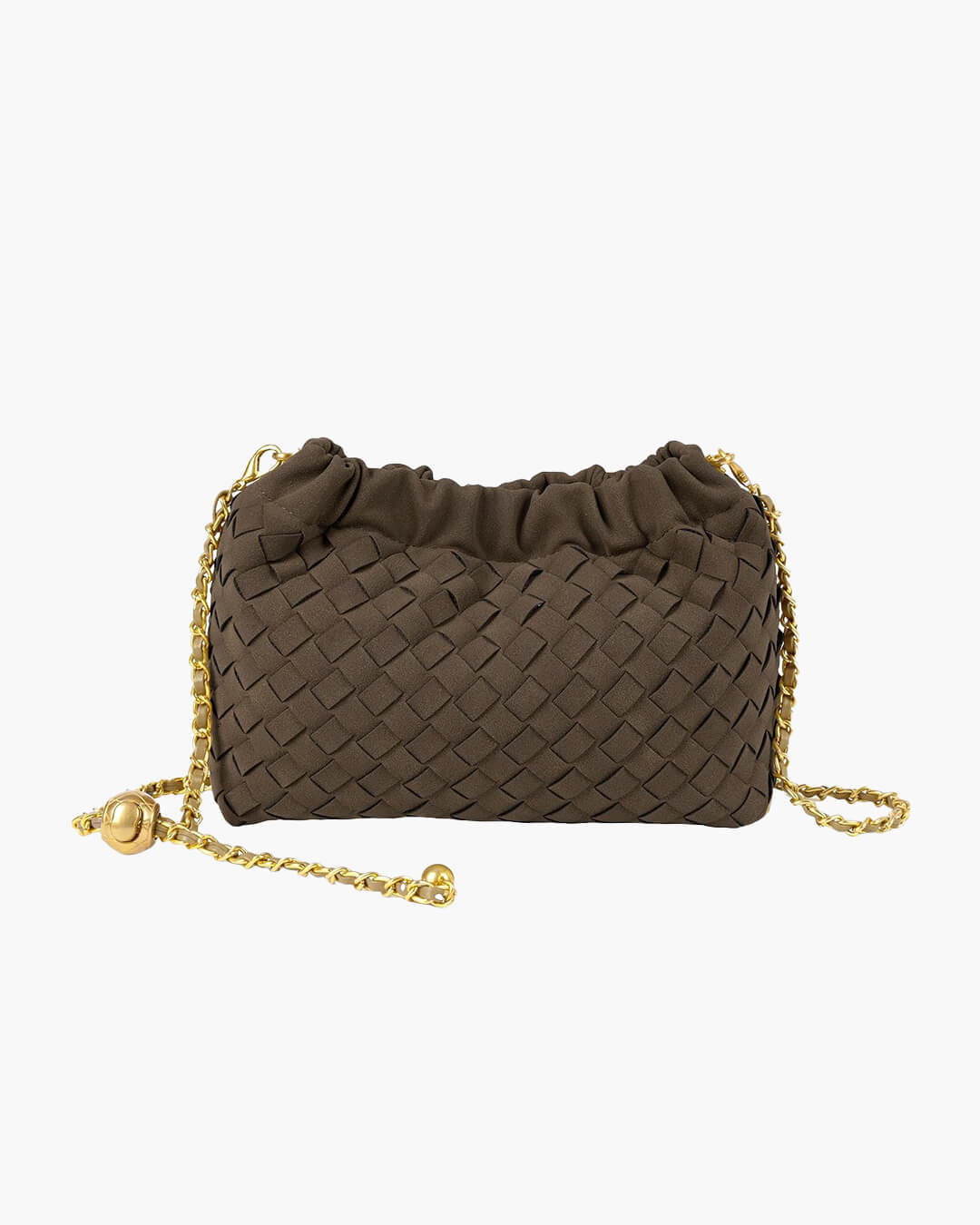 Upgrade your accessory collection with the Phoebe Womens Woven Crossbody Bag, designed to blend modern fashion with sustainable materials. Crafted from premium soft vegan suede, this bag delivers the luxe look of designer pieces without compromising on ethics. The stylish dumpling silhouette and woven detailing create a cloud-like softness, while the polished chain strap adds a touch of edge and durability. Its versatile design allows you to wear it as a crossbody, a shoulder bag, or carry it as an evening clutch, making it the perfect match for casual, office, or party outfits. Spacious enough to hold your daily essentials like phone, wallet, and makeup, itโ€™s also lightweight and comfortable for all-day wear. The high-quality vegan suede construction ensure long-lasting use with easy maintenance, while the trendy yet timeless look makes it a must-have piece for every season. Whether youโ€™re heading out for brunch, an evening event, or everyday errands, this crossbody bag adds sophistication, sustainability, and practicality to your style.