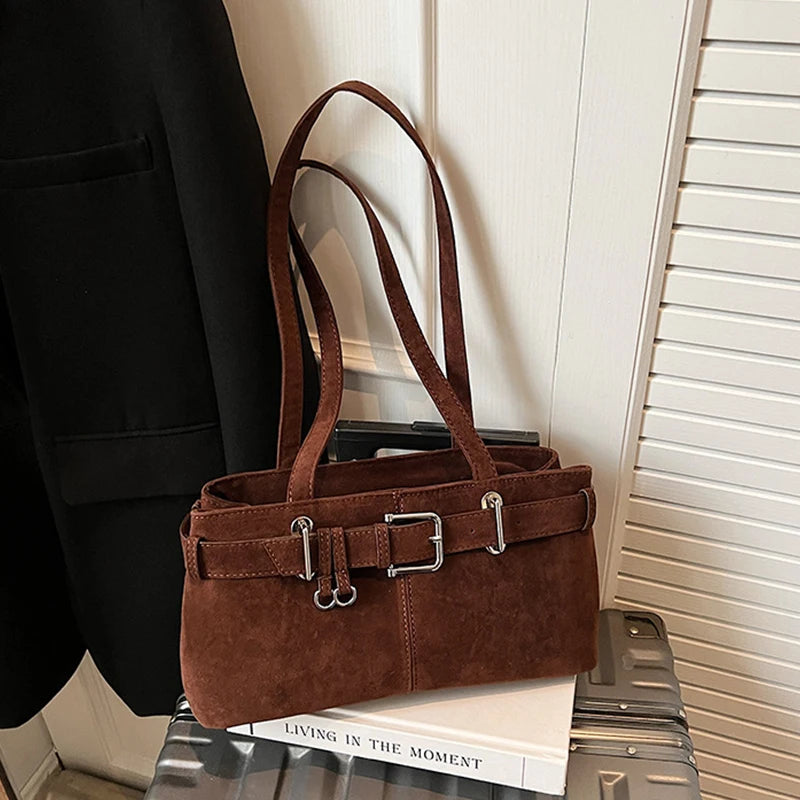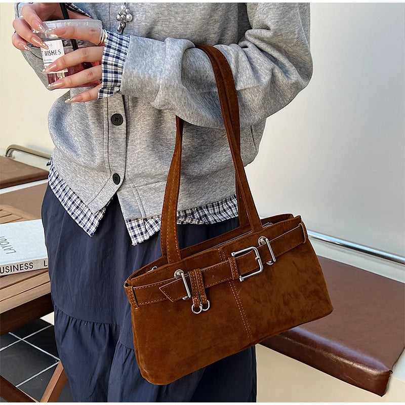 Discover the perfect blend of style and functionality with our Nora Vegan Suede Bag. Designed with a chic French belt buckle, this handbag is ideal for both casual outings and commuting. Its high-quality suede material ensures durability while adding a touch of luxury to your wardrobe.