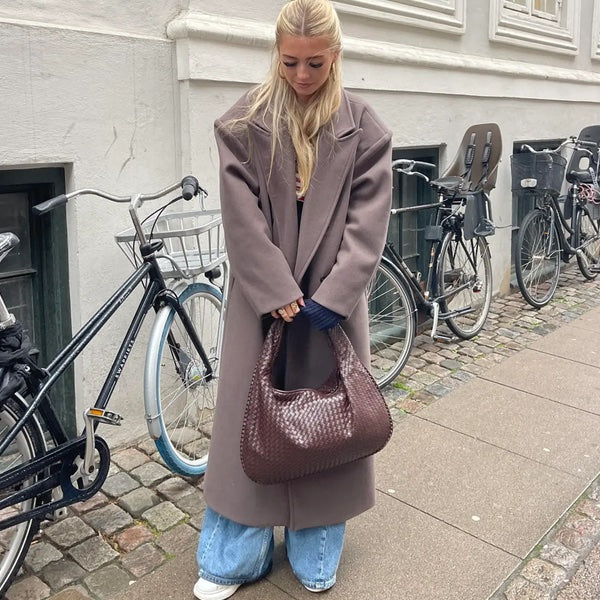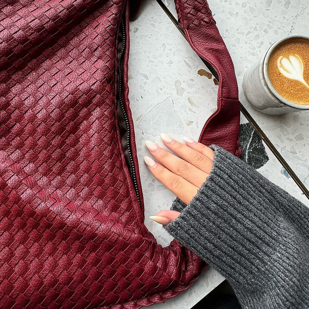 Introducing our Elegant Woven Satchel, a timeless shoulder bag that combines classic design with modern craftsmanship. Featuring intricate woven lattice details and a refined satchel silhouette, this piece is expertly crafted from soft, premium vegan leather for a luxurious feel and sustainable style. The silver stainless steel hardware adds a touch of understated elegance, while the spacious interior makes it perfect for carrying your daily essentials in style. Designed for versatility, this bag transitions effortlessly from work to weekends, making it a must-have for the modern wardrobe. Elevate your accessory collection with a bag that blends function, fashion, and durability.