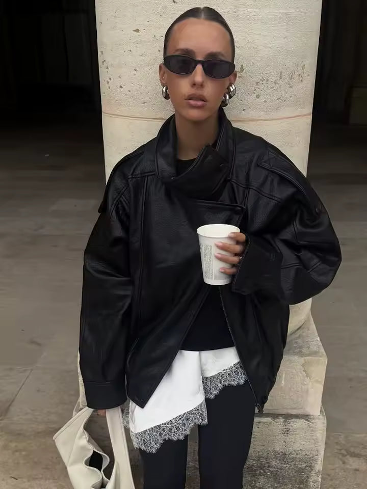 The Elena's loose-fitting cut makes it perfect for layering over fitted pieces or flowing dresses. The asymmetric design adds architectural interest to minimalist looks, while the practical pockets keep your essentials close at hand.