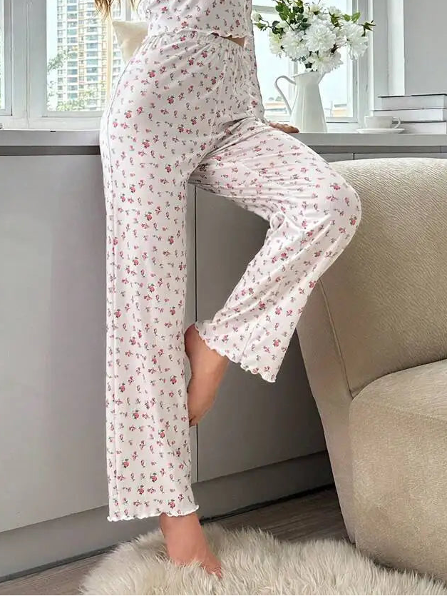Indulge in the ultimate nighttime sanctuary with the Flor Long Sleeve Floral Pajama Set. Designed to bring a touch of French elegance to your loungewear collection, this exquisite set is a must-have for the transition from cool spring mornings to balmy summer nights. Crafted from a premium knit fabric with a hint of stretch, it features a charming floral motif and delicate lace trim that whispers of romance. The classic notched collar and lightweight, breathable material ensure you stay comfortable yet impeccably polished, whether you're enjoying a slow coffee at sunrise or curling up for a peaceful evening in. Elevate your self-care ritual with a set that balances timeless feminine aesthetics with the modern need for unparalleled comfort.