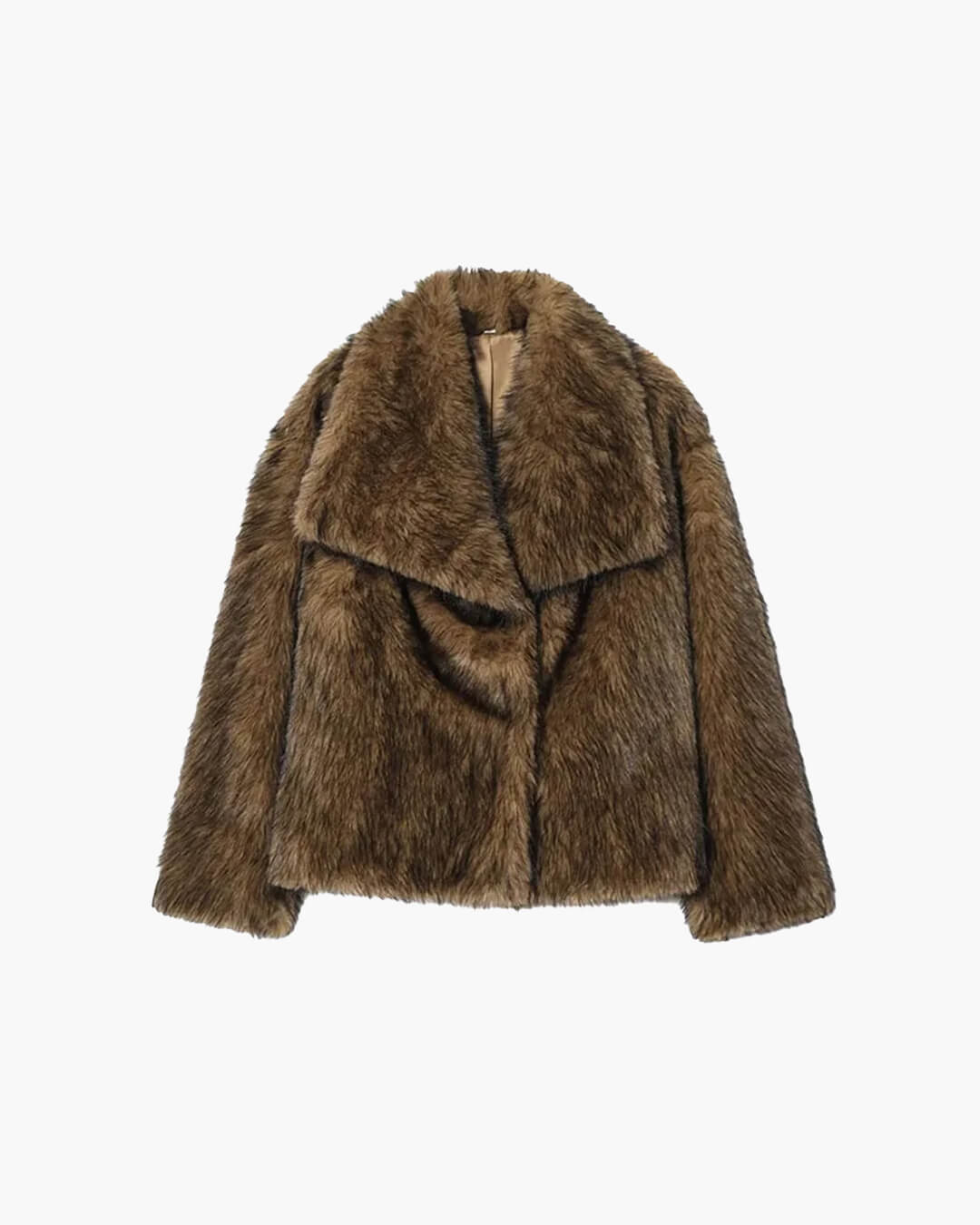 This Mandy Faux Fur Jacket features a chic faux fur design, perfect for adding warmth and style to your wardrobe. With long sleeves and a loose fit, it offers both comfort and versatility for various occasions.