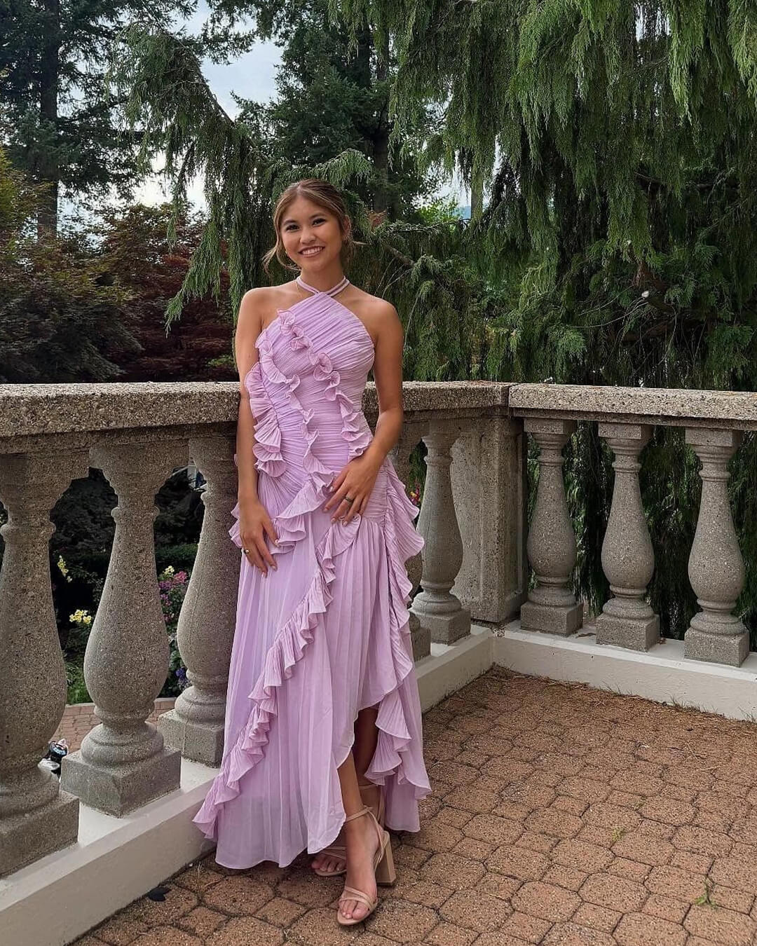 Step into elegance with this stunning evening gown Ruffa Halter Strap Ruffled Tule Dress, designed for unforgettable occasions. The ruffled neck strap adds a touch of sophistication, while the lace-up back ensures a perfect fit. Ideal for parties, vacations, and special events, this dress embodies the charm of Y2K fashion.